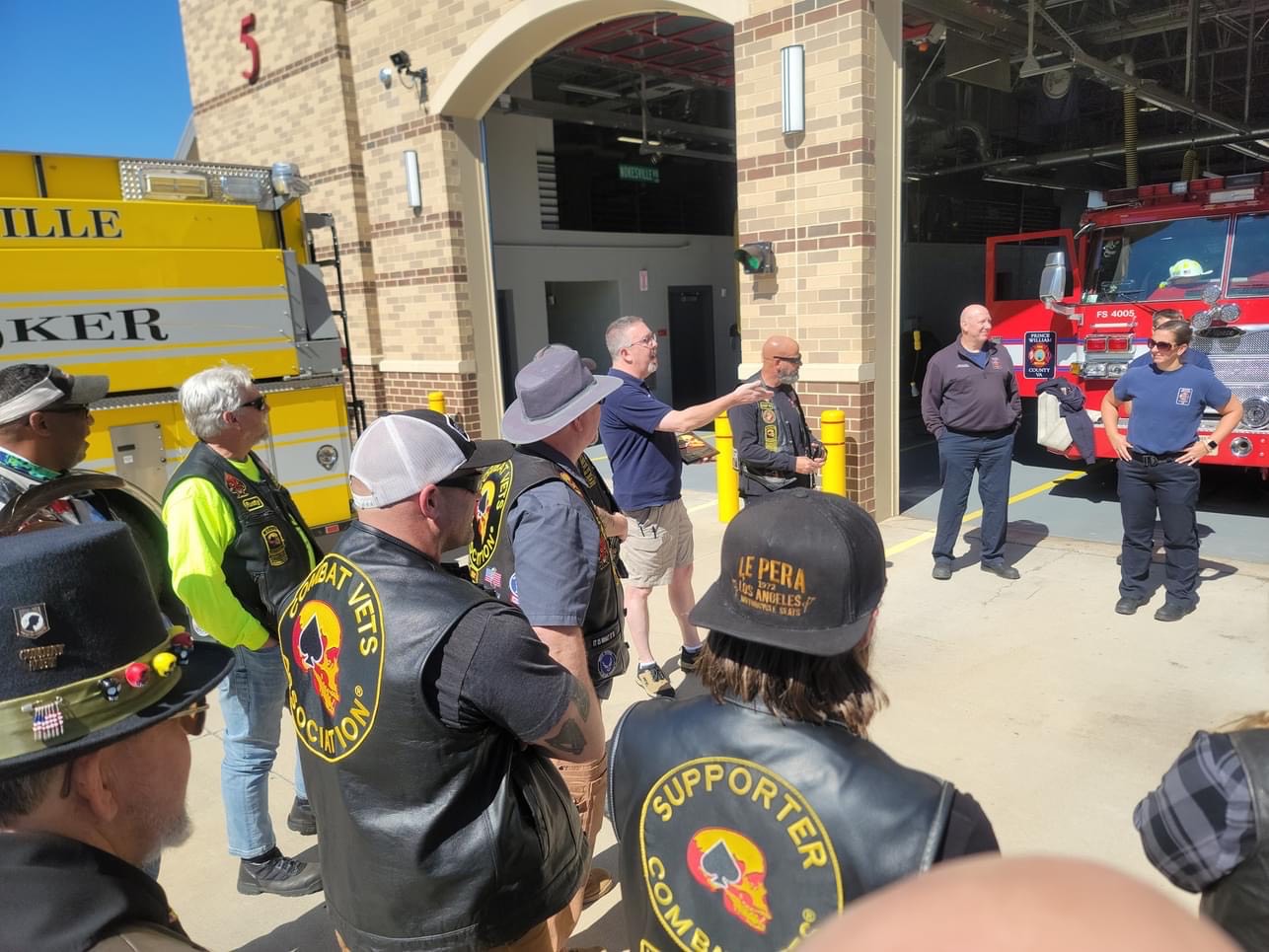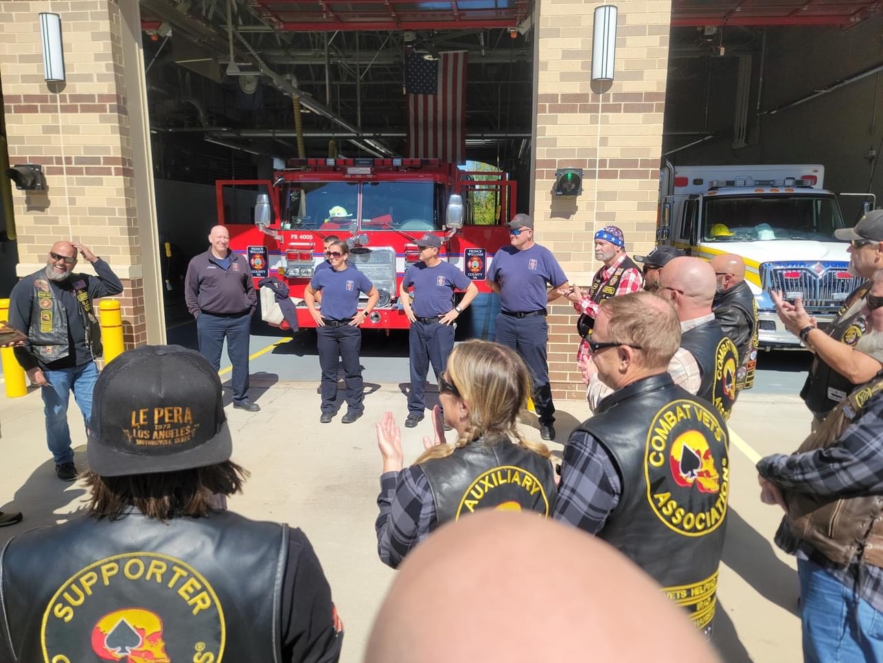 September 18, 2023, Nokesville VA – This past weekend members of the Combat Veterans Motorcycle Association, Chapter 27-2, stopped by Fire Station 5 to thank the crews and the members of Nokesville Volunteer Fire and Rescue along with Prince William County Fire and Rescue for supporting this clubs Poker Run that took place in July 2023.