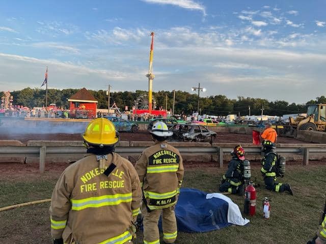Nokesville Crews helped Lake Jackson Volunteer Fire Department at the Prince William County Fair. Crews were on standby during the Demolition Derby to ensure the safety of the drivers and extinguish any fires.